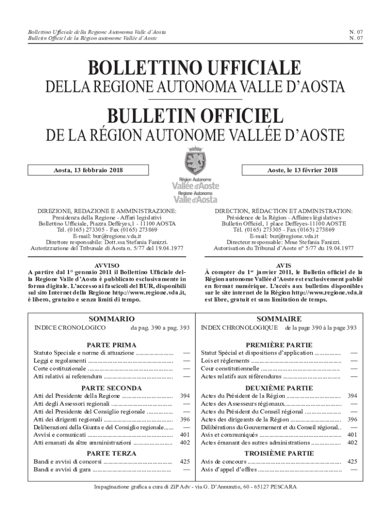 N. 07BOLLETTINO UFFICIALEDELLA REGION AUTONOMY VALUE DAOSTABULLETIN OFFICIAL LA REGION