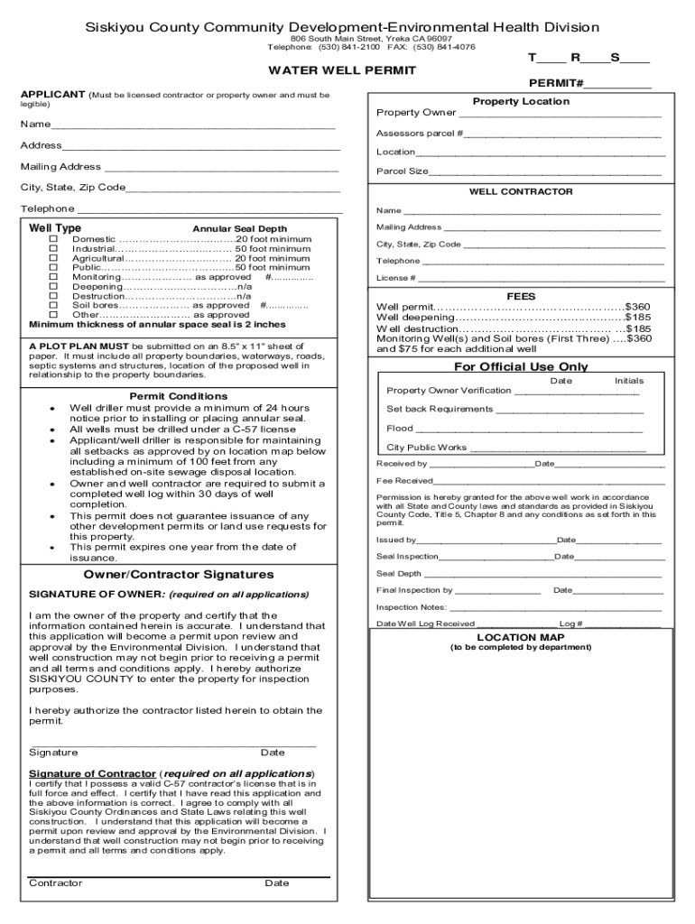 Get the free Well Permit Application - Siskiyou County