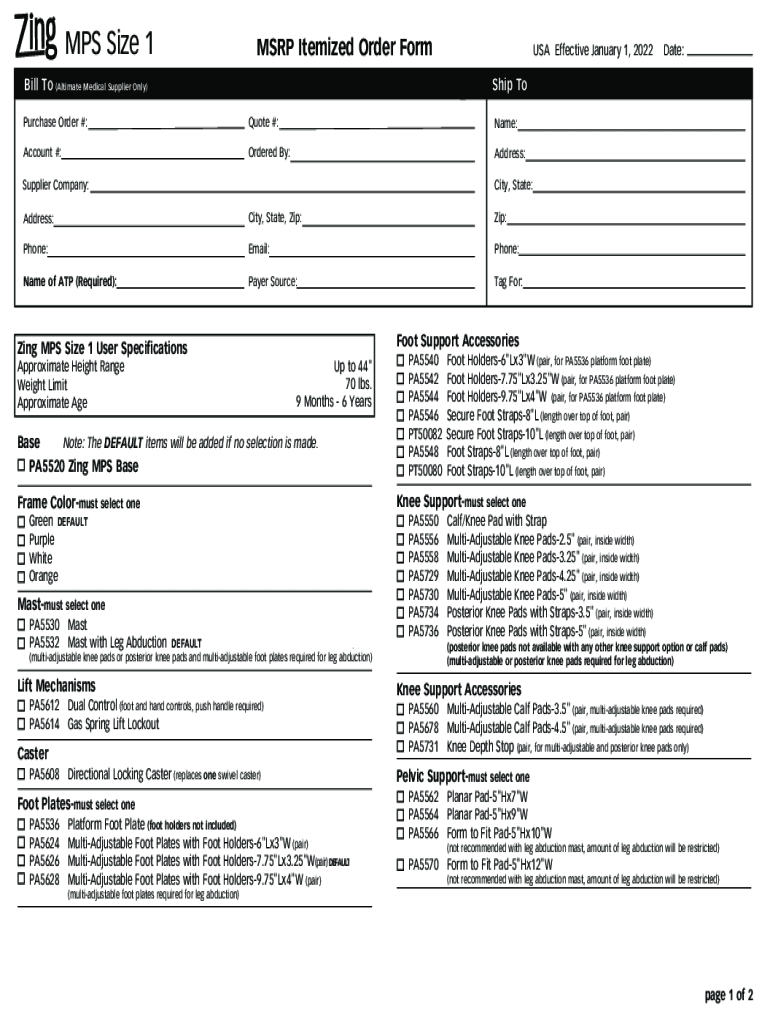 MPS Size 1MSRP Itemized Order Form Bill To (Ultimate Medical Supplier Only)USA Effective January 1, 2022Ship Purchase Order #:Quote #:Name:Account #:Ordered By:Address:City, State:Supplier Company:Address:City,
