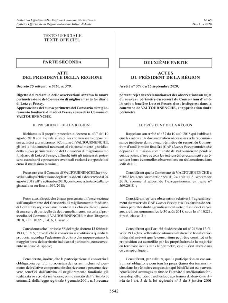 24 11 2020Bollettino Official Della Region Autonomy Value data