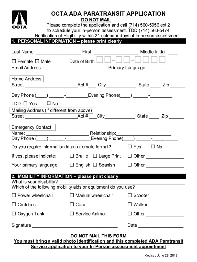 Get the free OC ACCESS Application Form (Service Info sheet and application)