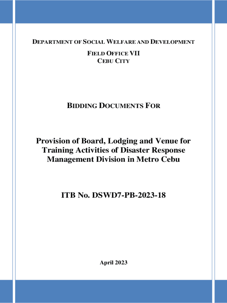 DEPARTMENT OF SOCIAL WELFARE AND DEVELOPMENT FIELD OFFICE VII CEBU OUTBIDDING DOCUMENTS Provision of Board, Lodging and Venue for Training Activities of Disaster Response Management Division in Metro