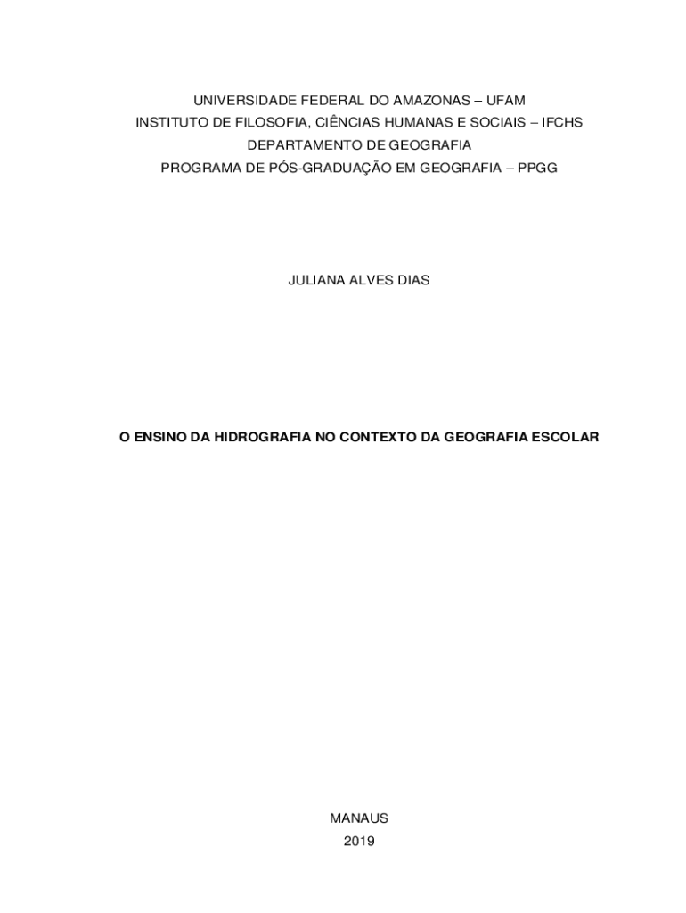 0UNIVERSIDADE FEDERAL DO AMAZONAS FAM INSTITUTE DE FILOSOFIA, CINEMAS HUMANS E SOCIALS IF CHS DEPARTMENT DE GEORGIA PROGRAM DE GRADUAL EM GEORGIA PPGGJULIANA ALVES DIAS ENSI NO DA HIDROGRAFIA NO CONTEXT