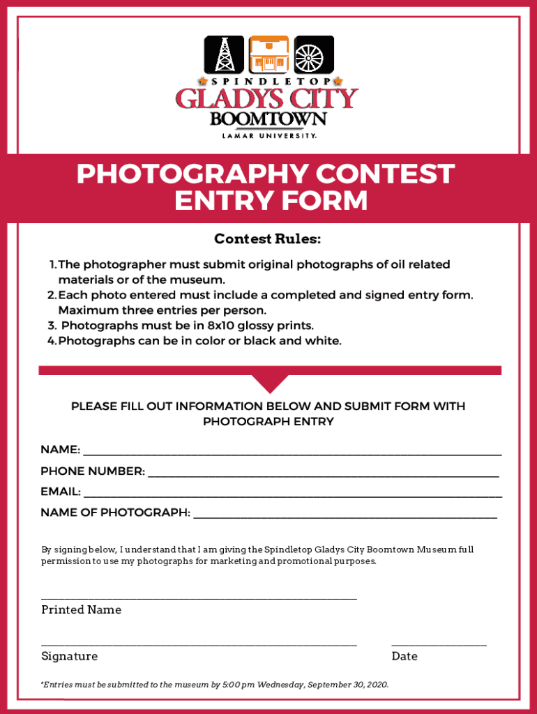 PHOTOGRAPHY CONTEST ENTRY FORM Contest Rules: 1. The photographer must submit original photographs of oil related materials or of the museum. 2. Each photo entered must include a completed and signed