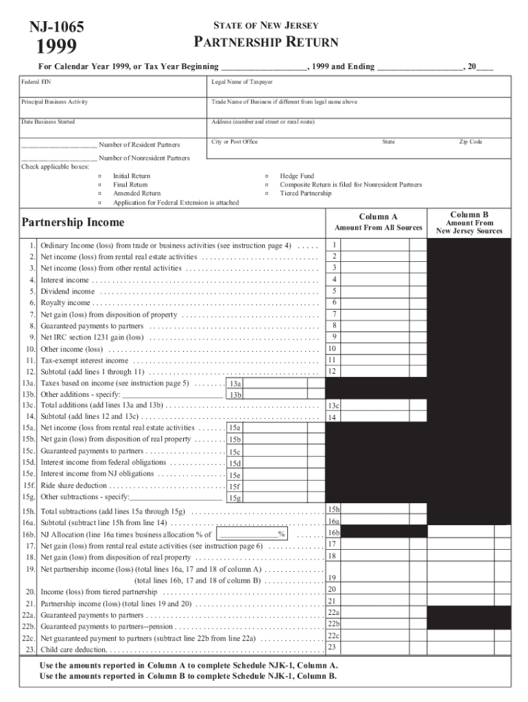 NJ10651999STATE OF NEW JERSEYPARTNERSHIP Returner Calendar Year 1999, or Tax Year Beginning ___, 1999 and Ending ___, 20___