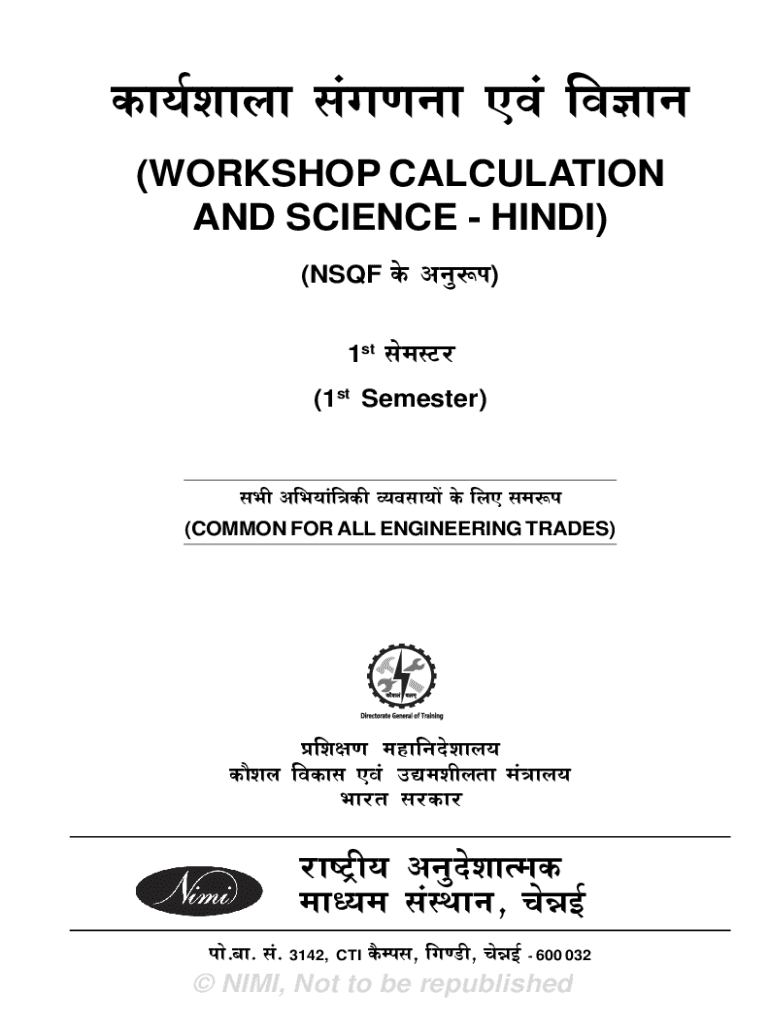 E Mix B Ex (WORKSHOP CALCULATION AND SCIENCE HINDI) (NSF 1stE +x)](1st Semester) +JE E B (COMMON FOR ALL ENGINEERING TRADES)|IH in E B ti j i E] +one v