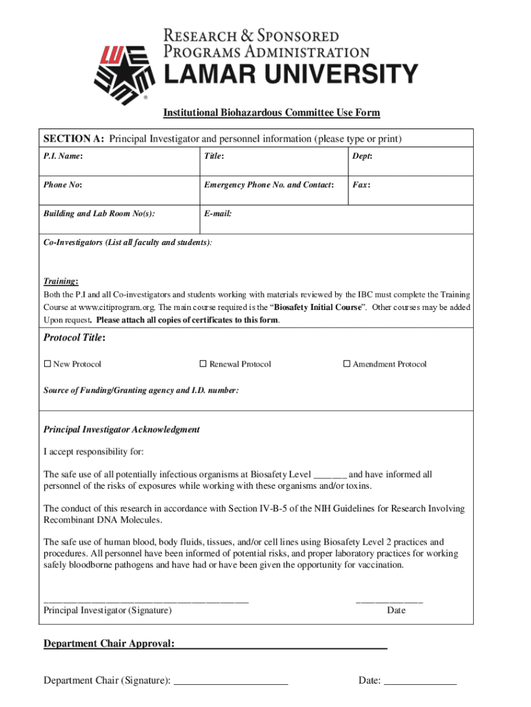 Edit your institutional biohazardous committee use form online