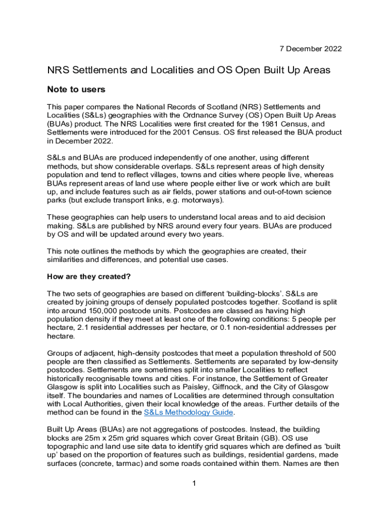 7 December 2022NRS Settlements and Localities and OS Open Built-Up Areas Note to users This paper compares the National Records of Scotland (NRS) Settlements and Localities (SLS) geographies with