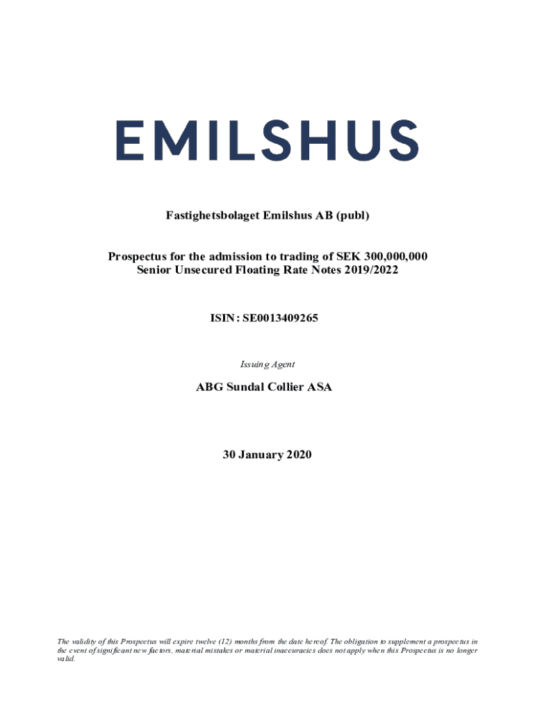 Fastighetsbolaget Malthus AB (pub) Prospectus for the admission to trading of SEK 300,000,000 Senior Unsecured Floating Rate Notes 2019/2022ISIN: SE0013409265Issuing Agent ABG Sunday Collier ASA30