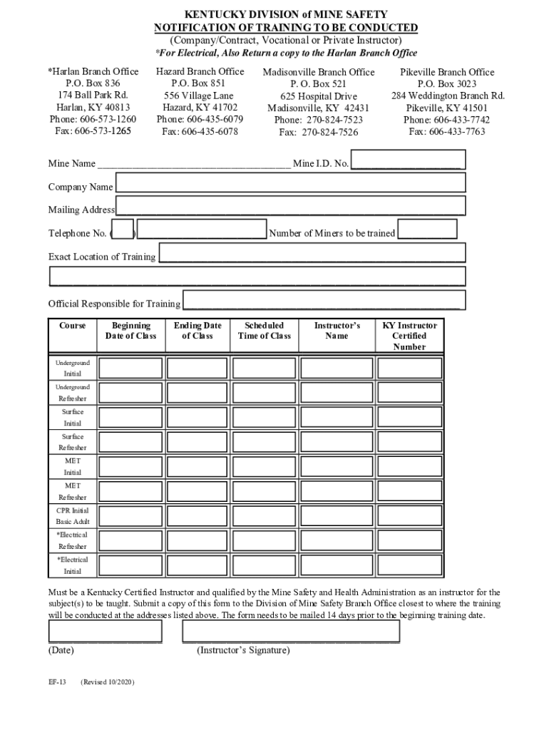 Get the free Notification of training to be conducted (Company/Contract, ... - eec ky