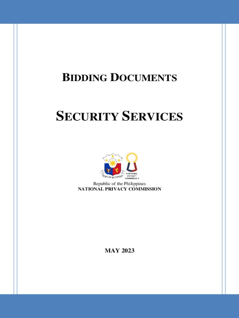 BIDDING DOCUMENTSSECURITY SERVICESRepublic of the Philippines NATIONAL PRIVACY COMMISSION 20231Table of Contents Glossary of Acronyms, Terms, and Abbreviations .3 Section I. Invitation to Bid.6 Section