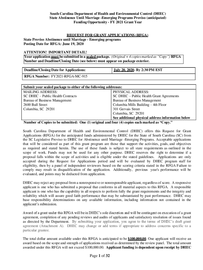 Funding Opportunity FY 2021 Grant YearREQUEST FOR GRANT