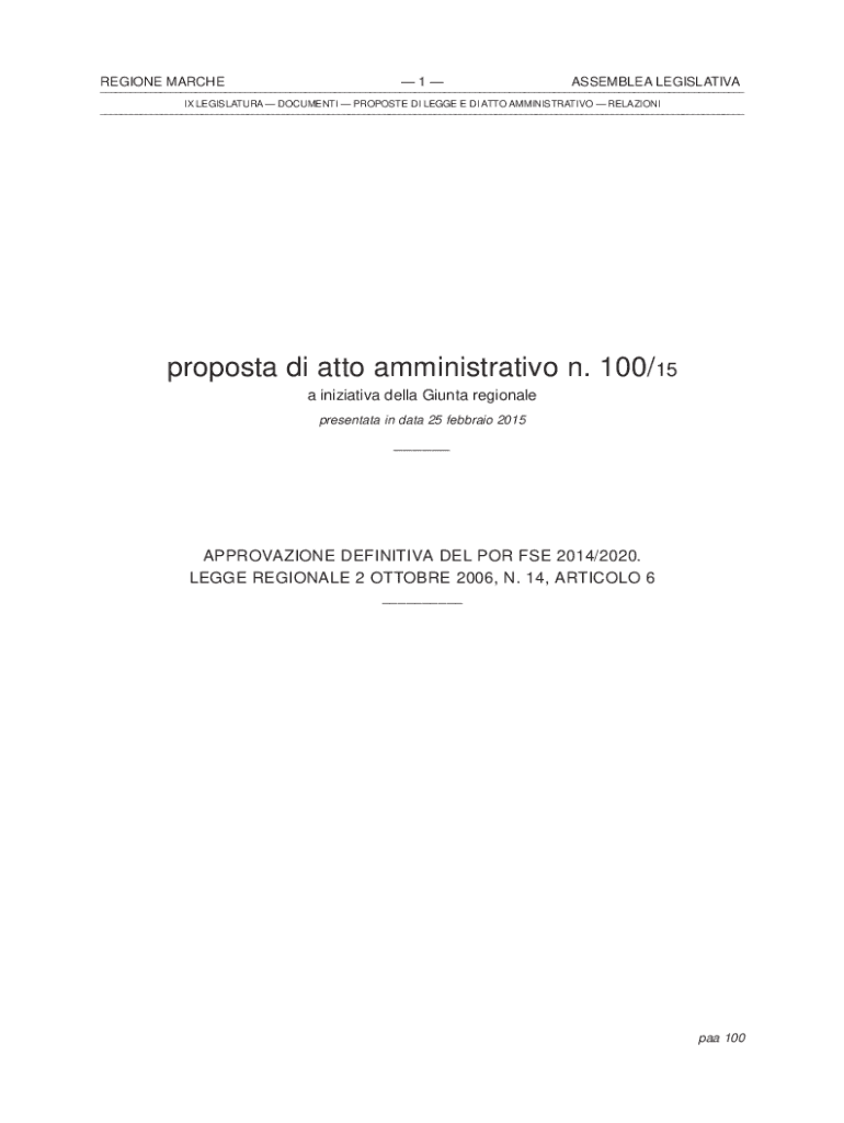 REGION MARCH 1 ASSEMBLED LEGISLATIVE ___ IX LEGISLATURE DOCUMENT PROPOSE DI LEGGED E DI AUTO ADMINISTRATIVE RELATIONS ___proposed DI auto administrative n. 100/15 an initiative Della Giant regional