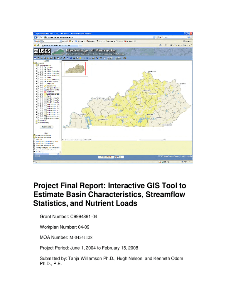 Project Final Report: Interactive GIS Tool to Estimate Basin Characteristics, Stream flow Statistics, and Nutrient Loads Grant Number: C999486104 Work plan Number: 0409 MOA Number: M04541128 Project