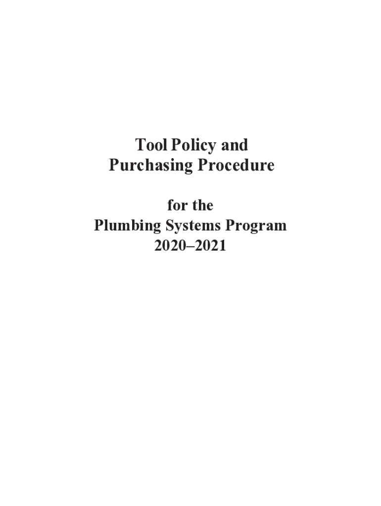 Tool Policy and Purchasing Procedure for the Plumbing Systems Program 20202021rev. 02/25/20 introduction This booklet will inform students of their options and of the procedures in purchasing required