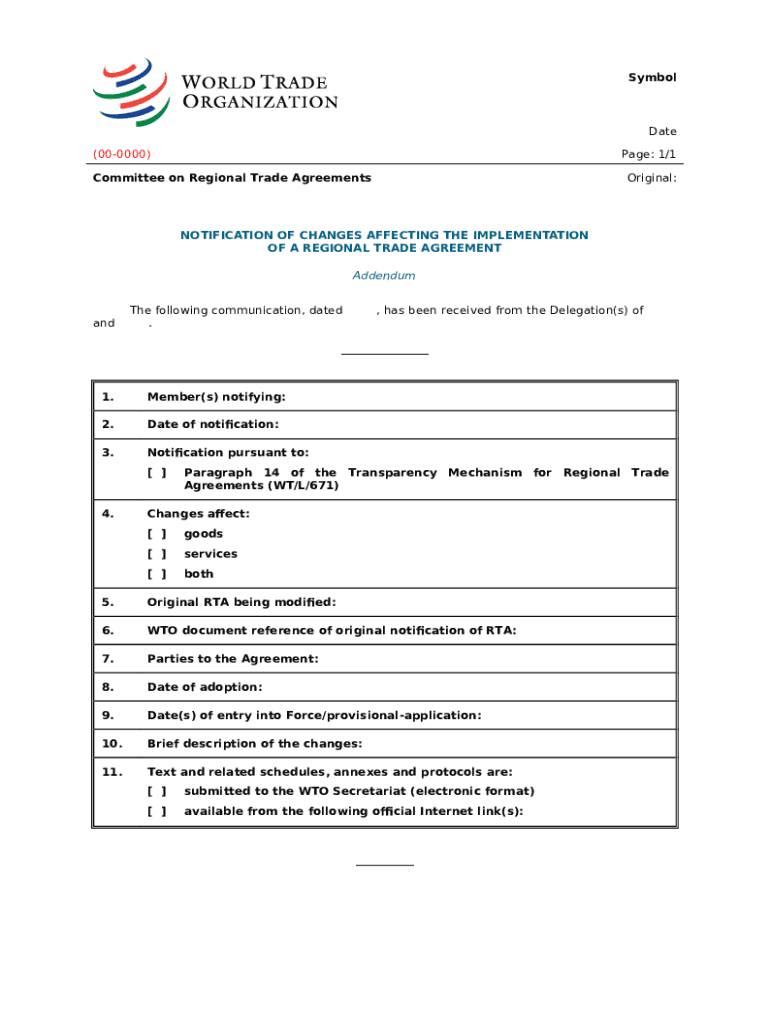 NOTIFICATION OF CHANGES AFFECTING THE ... template instructions
