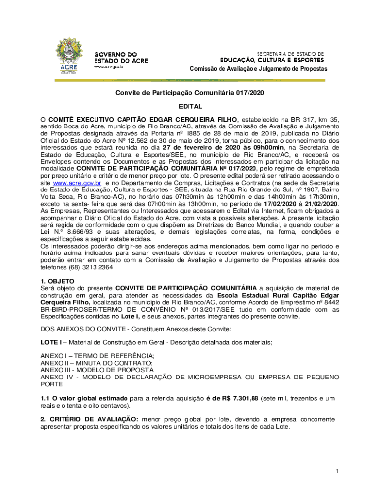 Comics de Avaliao e Judgment de PropostasConvite de Participao Communitarian 017/2020