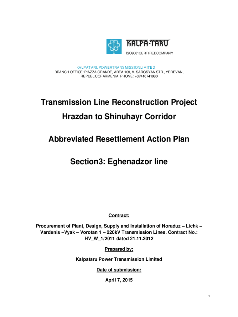 Get the free Transmission Line Reconstruction Project Hrazdan to Shinuhayr ...