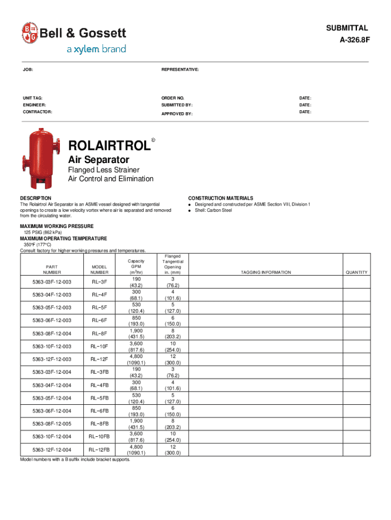 To fill out Bell & Gossett Rolairtrol, you need to provide information on air separator performance and maintenance.