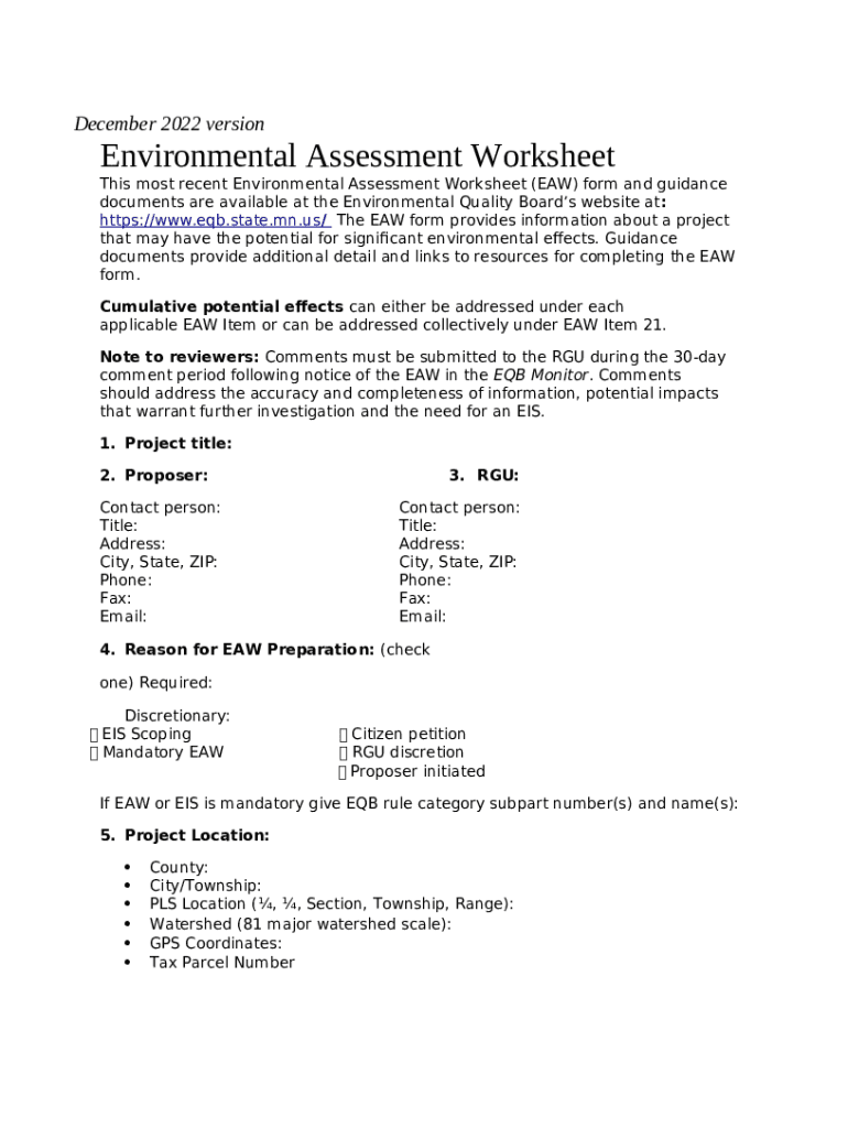 What is EQB - Environmental Assessment Worksheet - files Form?