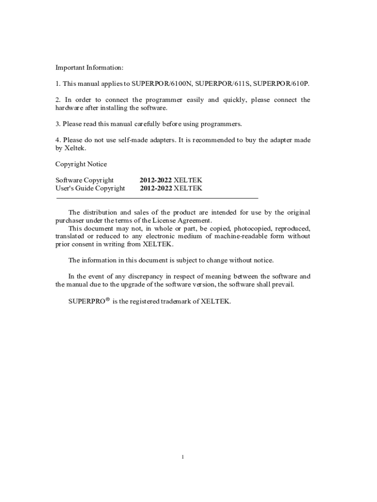 Important Information: 1. This manual applies to SUPERIOR/6100 N, SUPERIOR/611S, SUPERIOR/610P. 2. In order to connect the programmer easily and quickly, please connect the hardware after installing