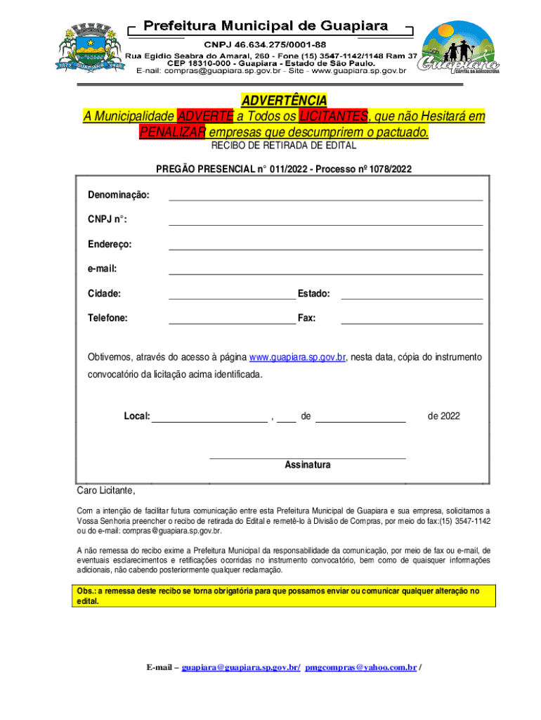 Obtenha o gratuito A Municipalidade ADVERTE a Todos os LICITANTES, que no Hesitar em