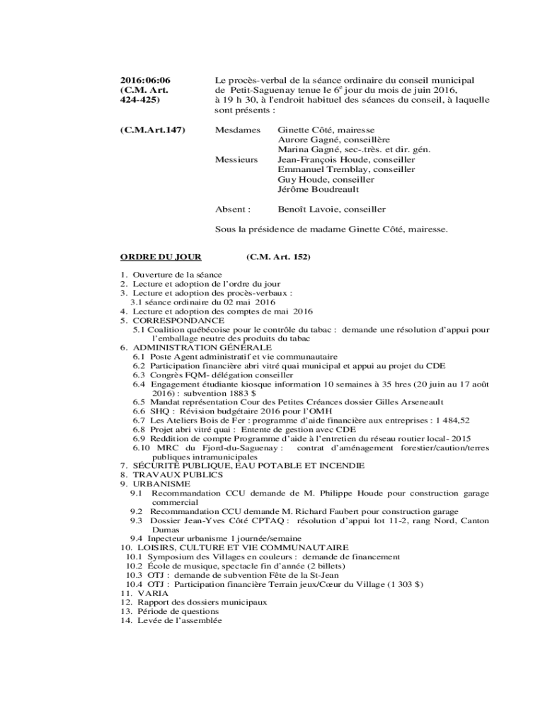 Obtenir le gratuit 2016:06:06 Le procs-verbal de la sance ordinaire du ...