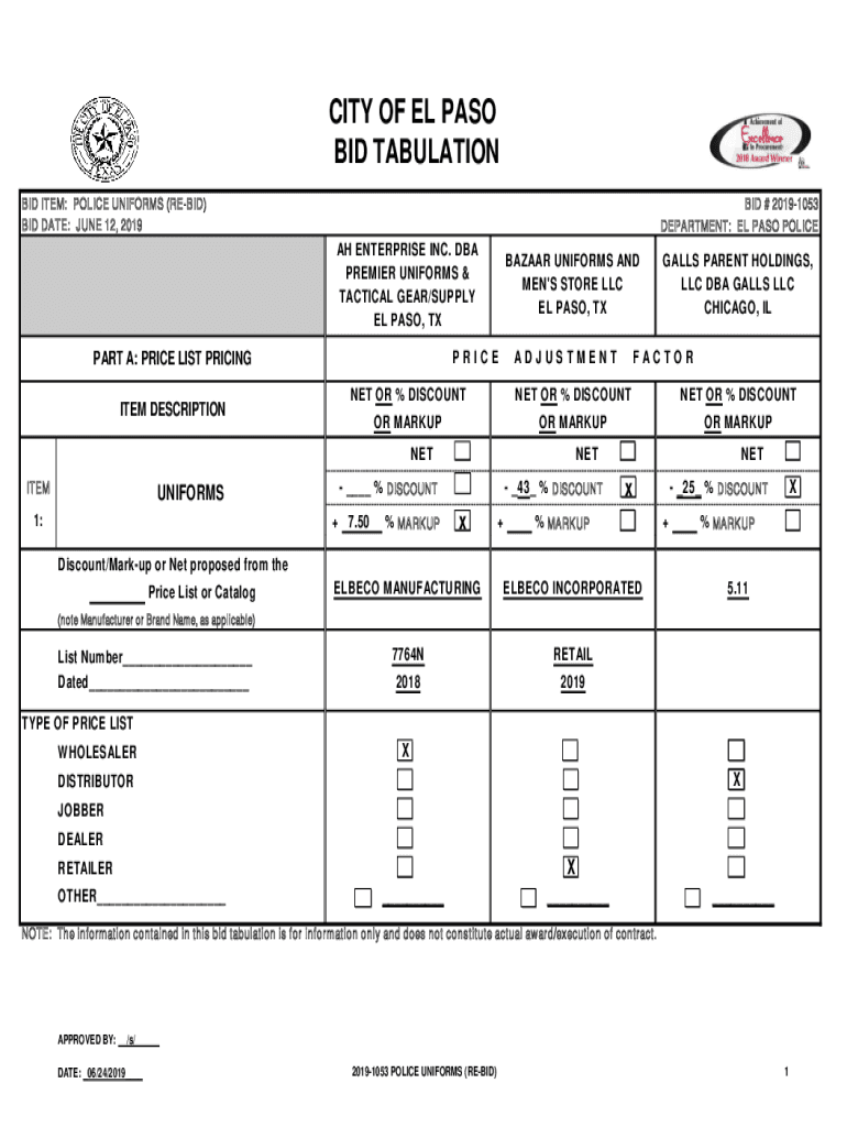 DEPARTMENT: EL PASO POLICE ENTERPRISE INC. DBA