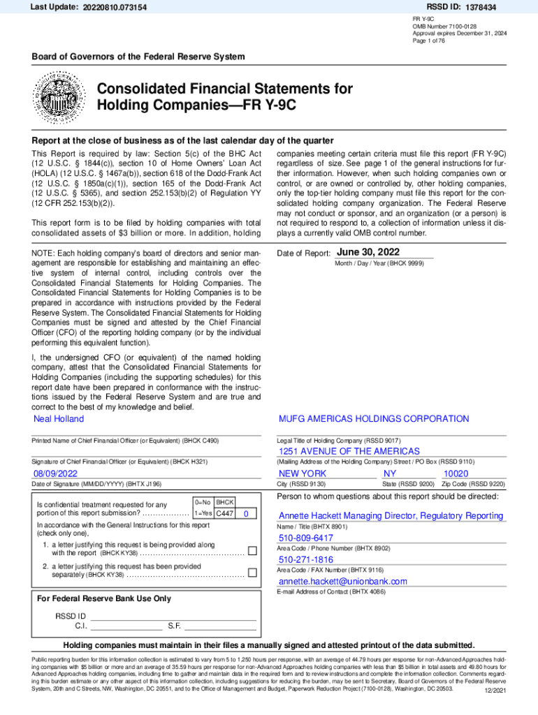 Last Update: 20220810.073154RSSD ID: 1378434 FR Y9C OMB Number 71000128 Approval expires December 31, 2024-Page 1 of 76Board of Governors of the Federal Reserve SystemConsolidated Financial Statements