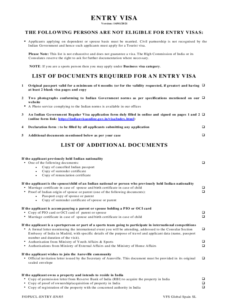 ENTRY VISA Version: 14/01/2021THE FOLLOW ING PERSONS ARE NOT ELIGIBLE FOR ENTRY VISAS: Applicants applying on dependent or spouse basis must be married. Civil partnership is not recognized by the