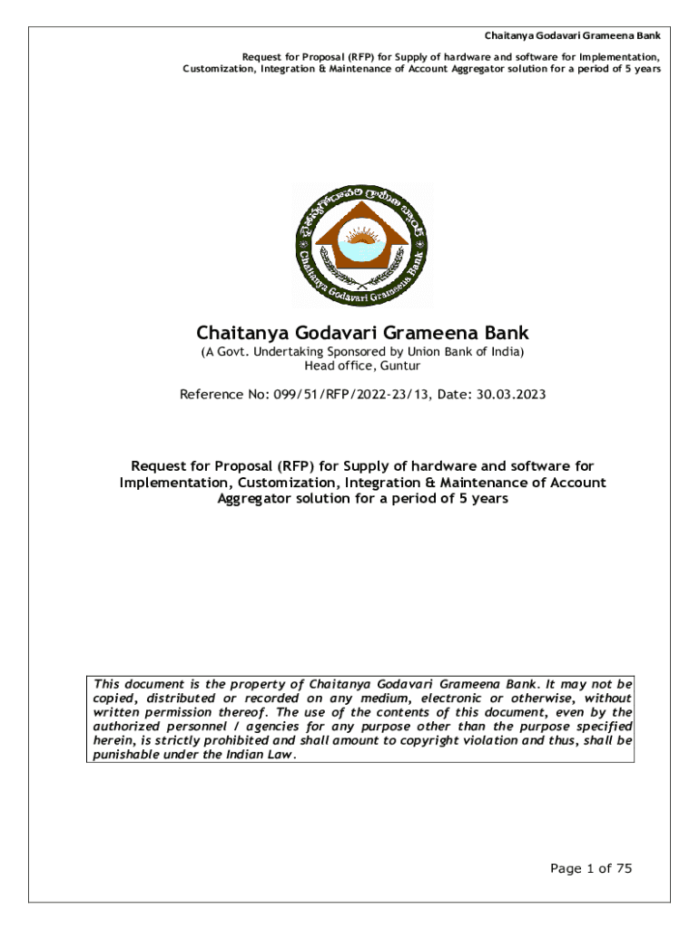 Request for Proposal (RFP) for Supply of hardware and software for Implementation,