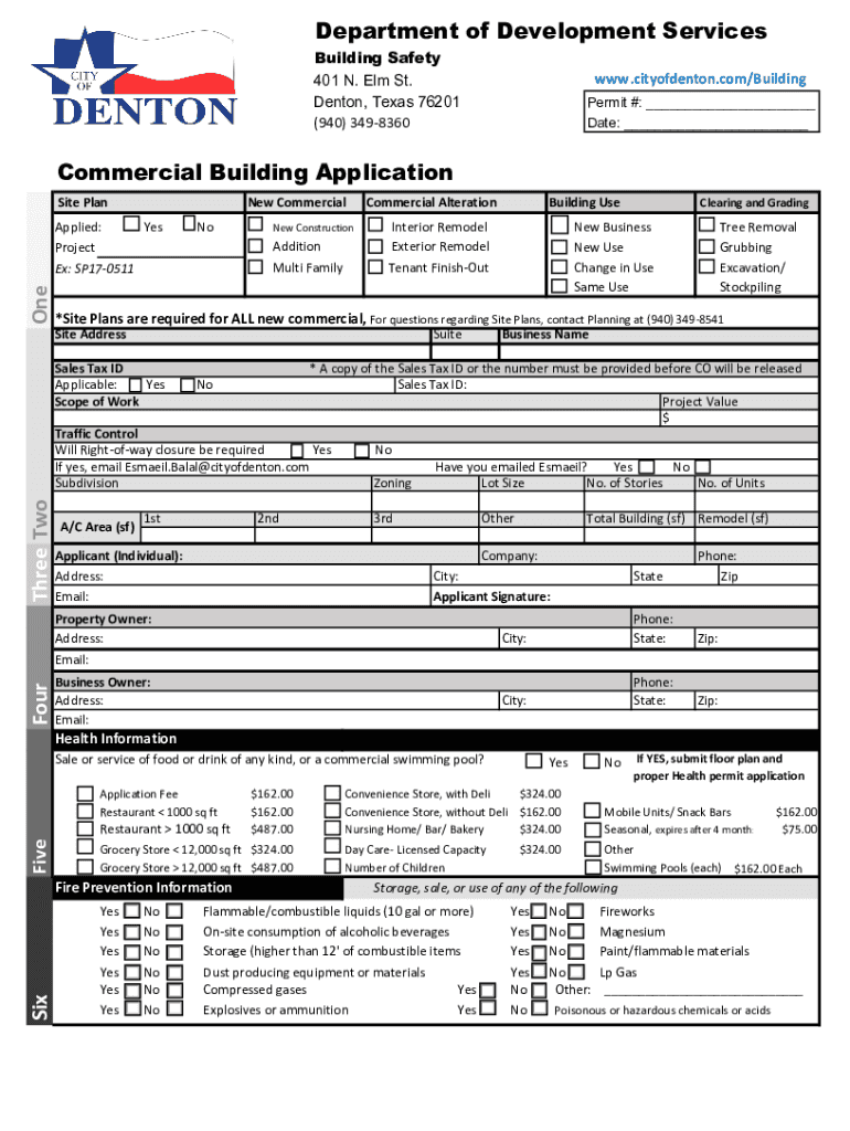 Ensure all required documents are attached to the forms, such as plans, permits, and licenses.