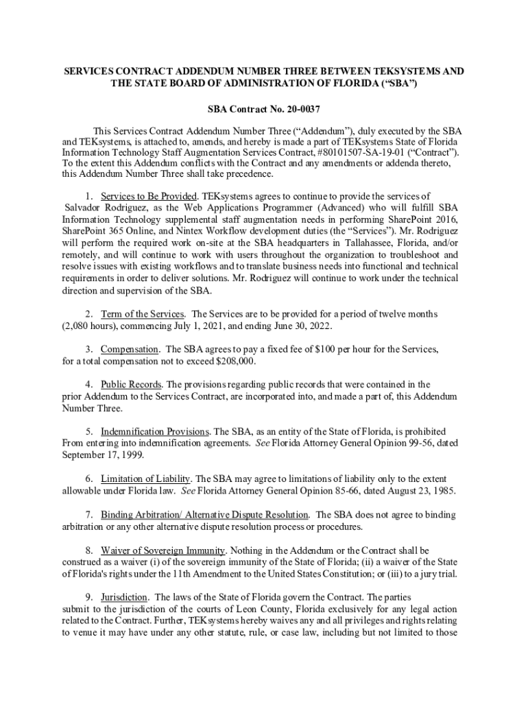 Get the free Services Contract Addendum Number Three between TEKsystems ...