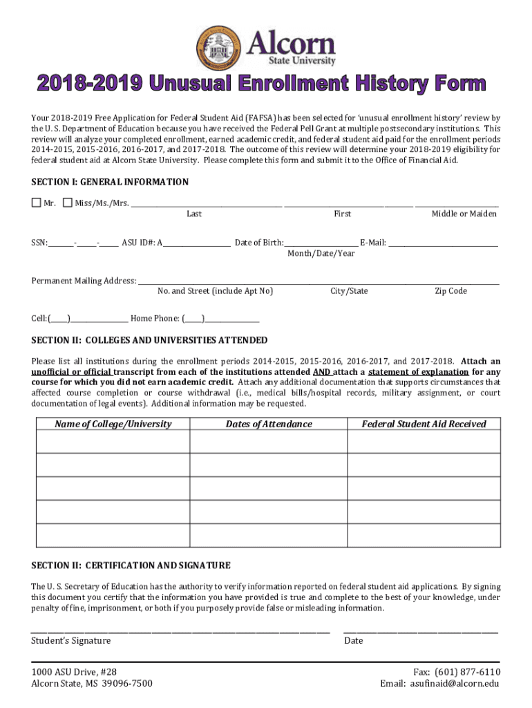 Your 20182019 Free Application for Federal Student Aid (FAFSA) has been selected for unusual enrollment history review by the U. S. Department of Education because you have received the Federal Well