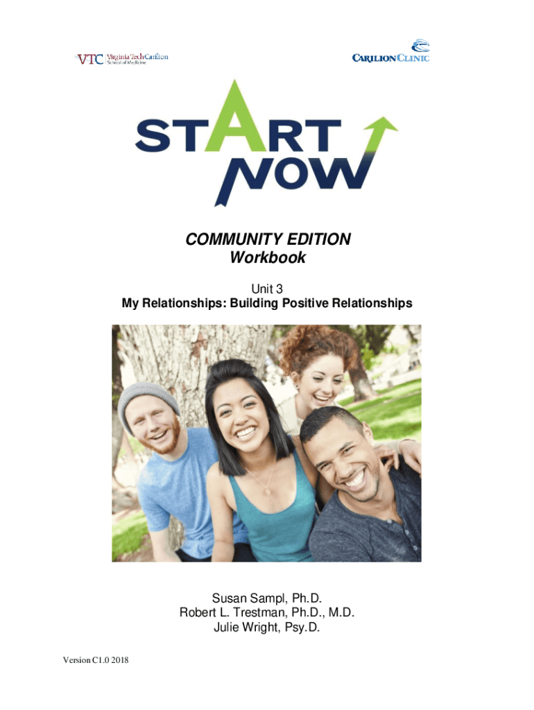 COMMUNITY EDITION Workbook Unit 3 My Relationships: Building Positive Relationships Susan Sample, Ph.D. Robert L. Freshman, Ph.D., M.D. Julie Wright, Pay. D. Version C1.0 2018My Relationships: Building
