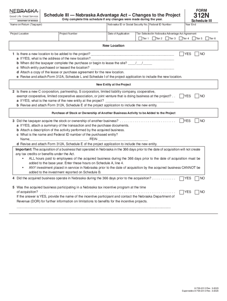 PRINTRESETFORM312NSchedule III Nebraska Advantage Act Changes to the Project