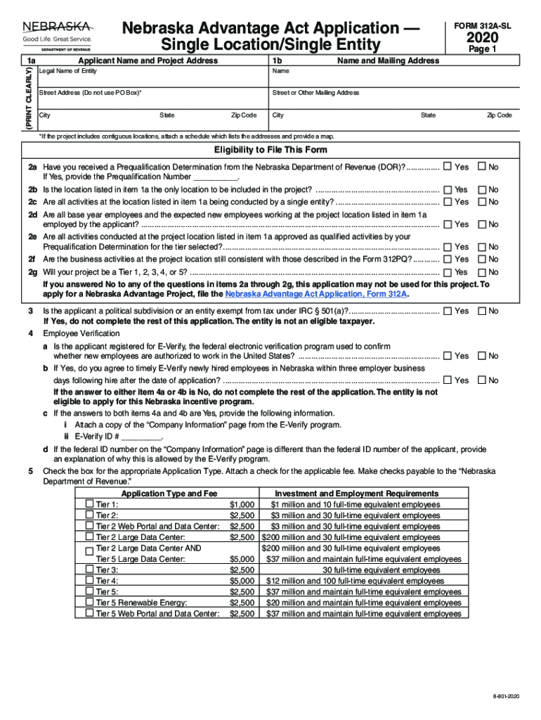 Get the free Nebraska Advantage Act Application Single Location/ ...