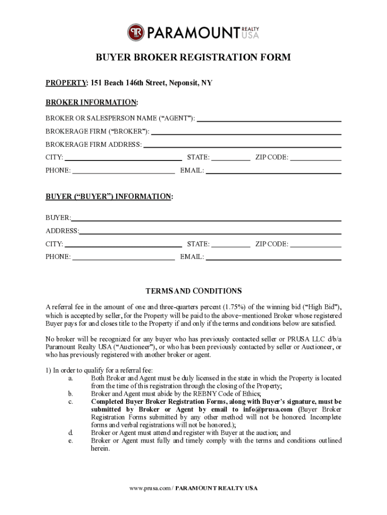 Anyone who is looking to purchase a property with the assistance of a real estate agent or broker needs to fill out a buyer broker registration form.