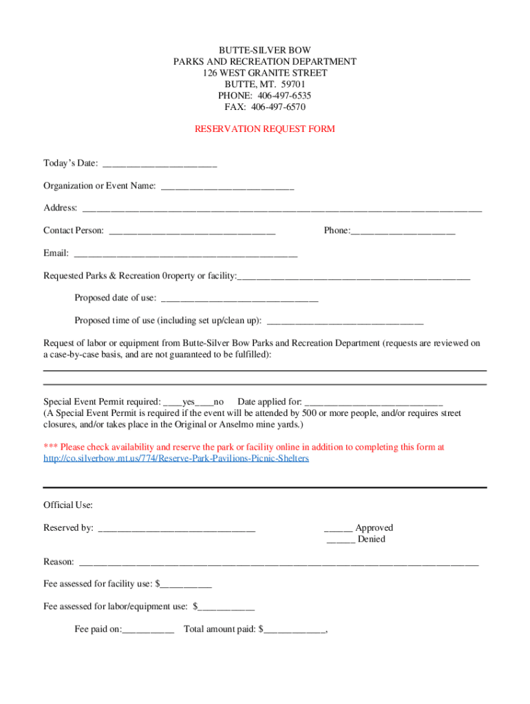Obtain the necessary forms for butte-silver bow parks and from the designated office or online platform.