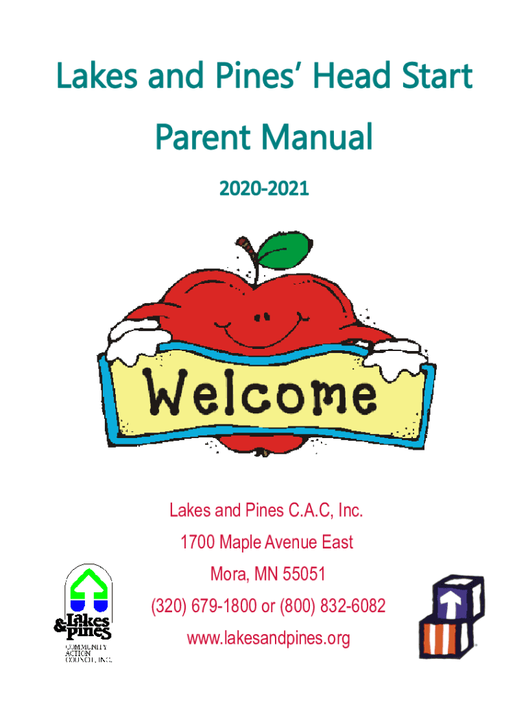 Lakes and Pines C.A.C, Inc. 1700 Maple Avenue East Morey, MN 55051 (320) 6791800 or (800) 8326082 www.lakesandpines.orgOn behalf of Lakes and Pines and especially the Early Childhood and Family DevelopmentDepartment,