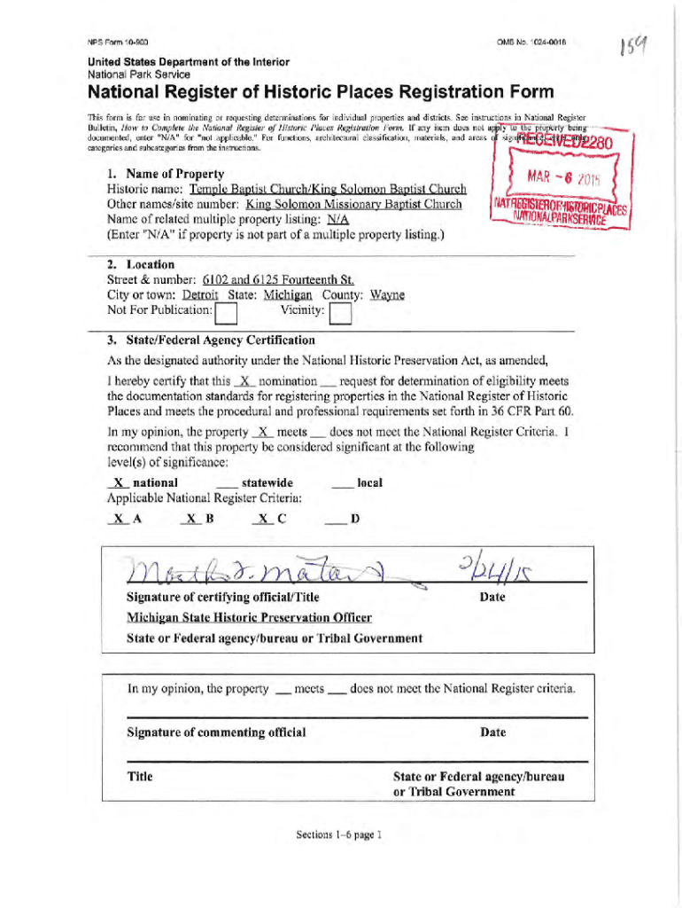 NPS Form 109000 MB No. 10240018United States Department of the Interior National Park ServiceNational Register of Historic Places Registration Form This form is for use in nominating or requesting