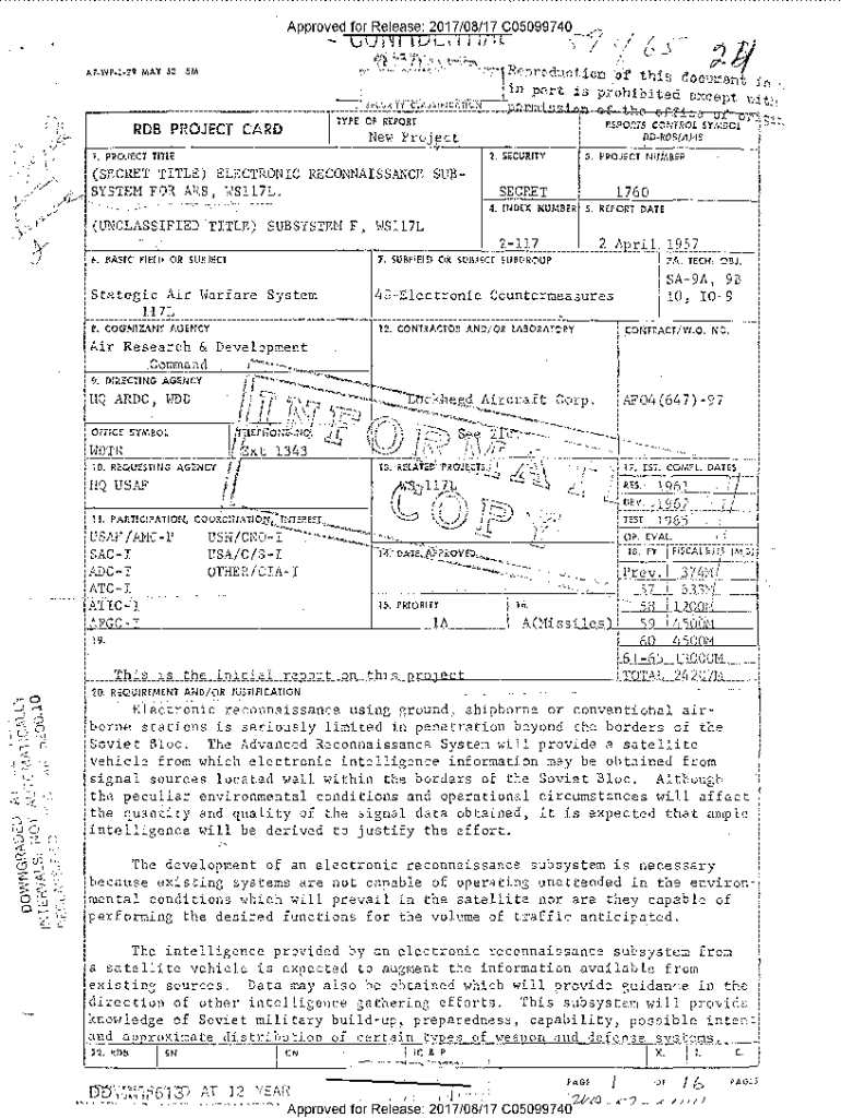 AF.WP. L2\'1 MAY 53.\'i, \'\'!, F, ; / : /, (//. \'(:v\” Y\'v\')you.SM2. SECURITY1. PROJECT TITLE(SECRET TITLE) ELECTRONIC RECONNAISSANCE SU13SYSTEM FOR AS, WSll7L.__\”.,., __. _ \'_\'_\'_\'___\”