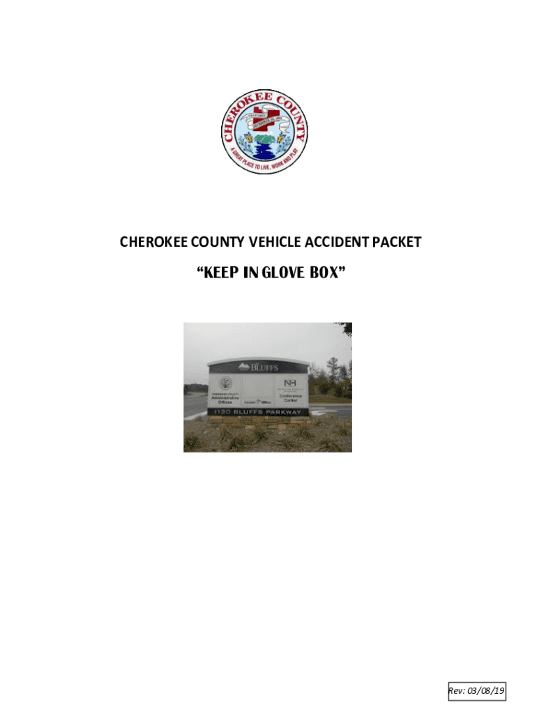 CHEROKEE COUNTY VEHICLE ACCIDENT RACKETEER IN GLOVE BOX Rev: 03/08/19CHEROKEE COUNT Y VEHICLE ACCEDE NT INSTRUCTIONS Drug and alcohol testing must be performed when any employee, while in operation