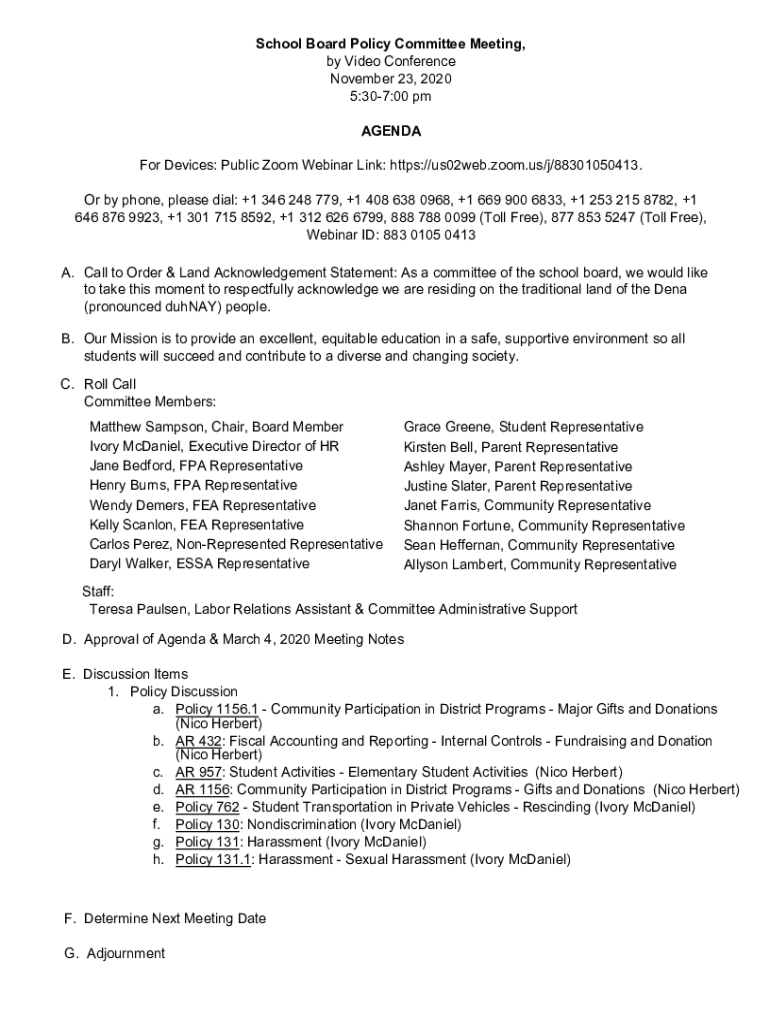 The specific information that must be reported on by video conference will depend on the nature of the meeting or appointment.