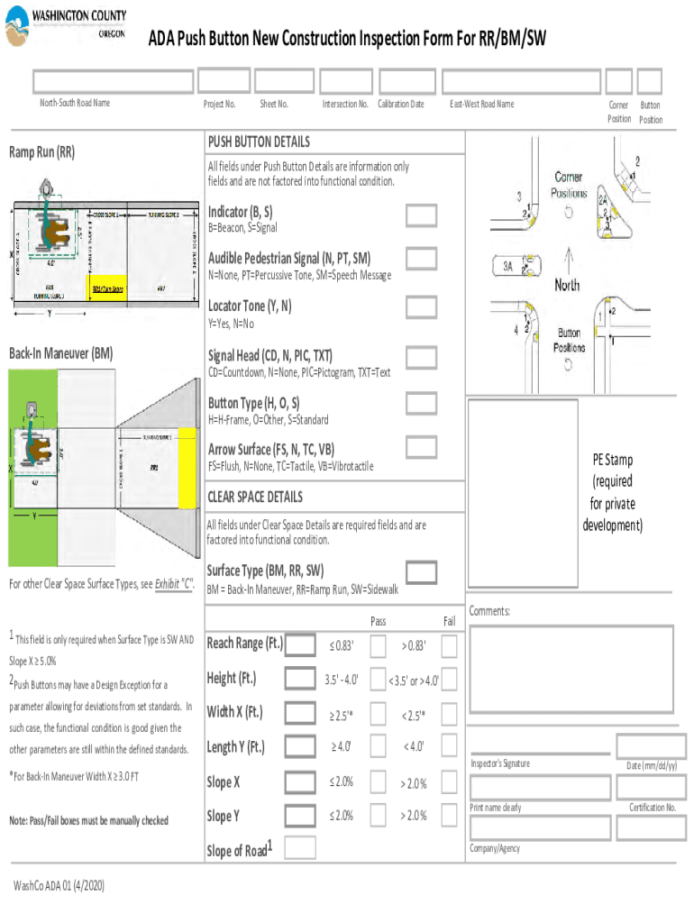 ADA Push Button New Construction Inspection Form For RR/BM/SW