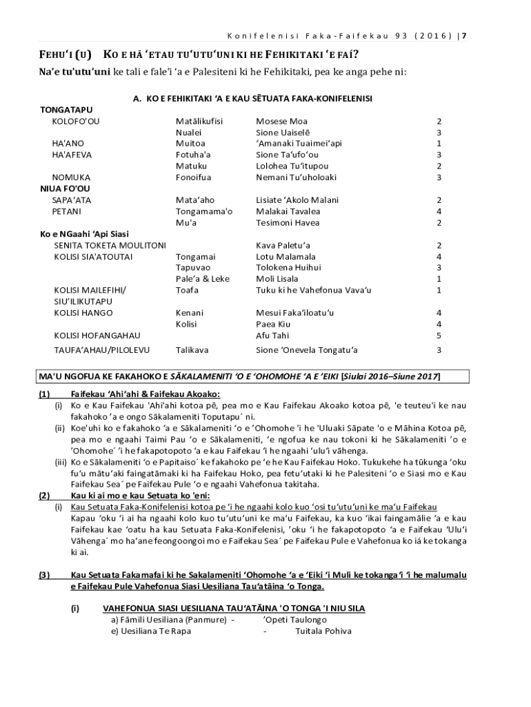 Get the free Na'e tu'utu'uni ke tali e fale'i 'a e Palesiteni ki he Fehikitaki, pea ke ...