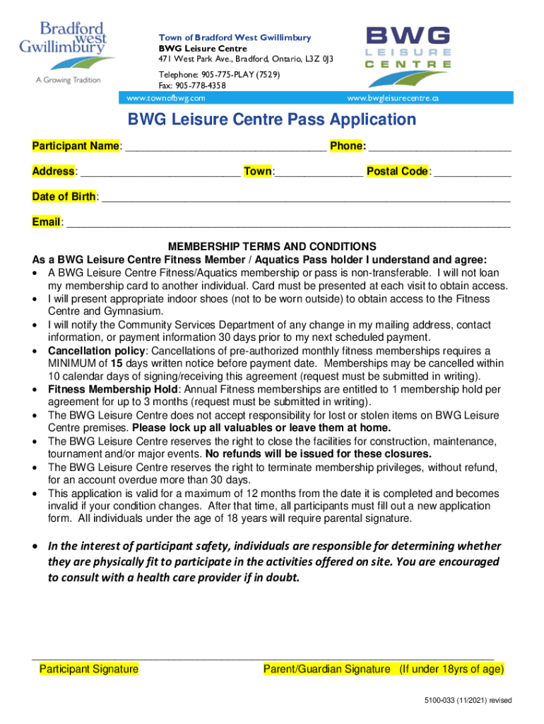 To fill out a BWG Leisure Centre pass, you can visit the centre's front desk and complete the necessary forms.