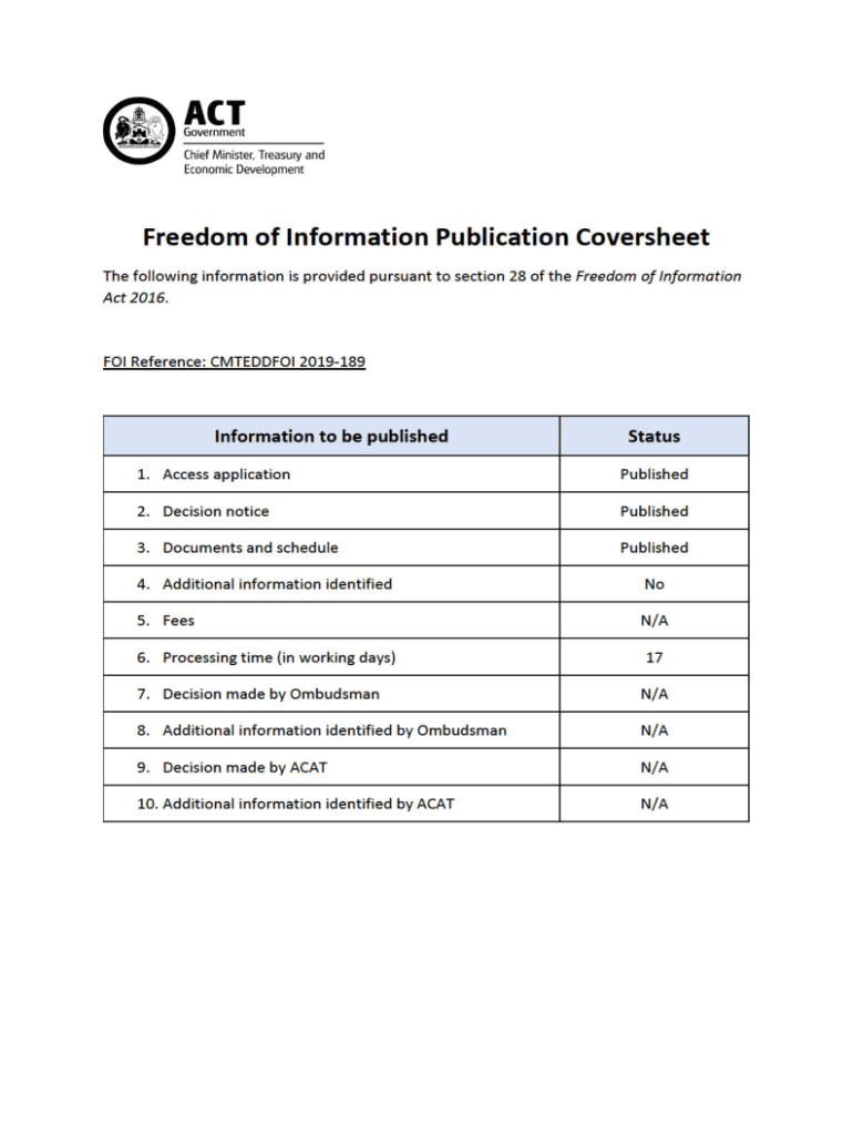 Get the free Freedom of information disclosure log 2019