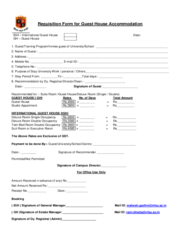 Get the free Requisition Form for Guest House Accommodation