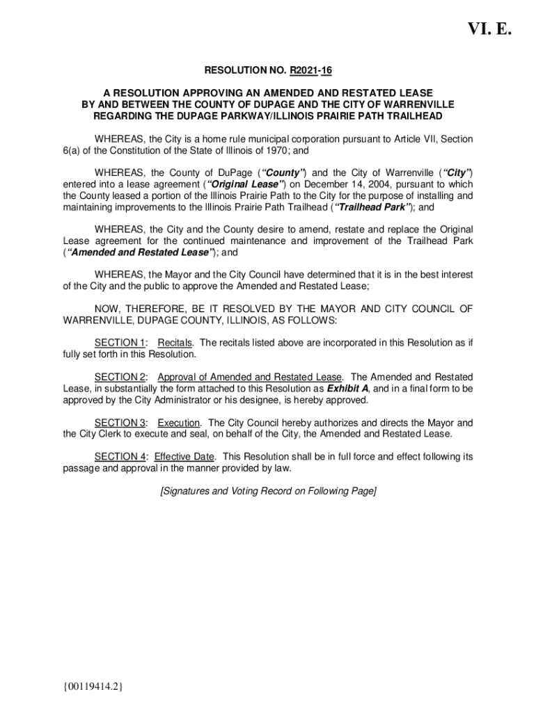 Get the free WV.Resolution Approving Amended and Restated Lease for Illinois ...